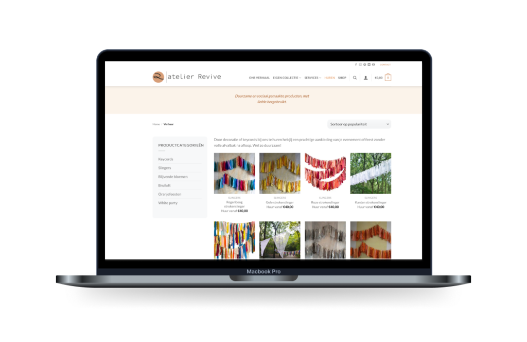 Atelier Revive had behoefte aan meer overzicht en duidelijkheid in de bestaande website, met name rond verhuur en de webshop. Verhuur en verkoop liepen door elkaar, waardoor bezoekers moeite hadden om snel te begrijpen wat ze konden huren en hoe dat werkte.